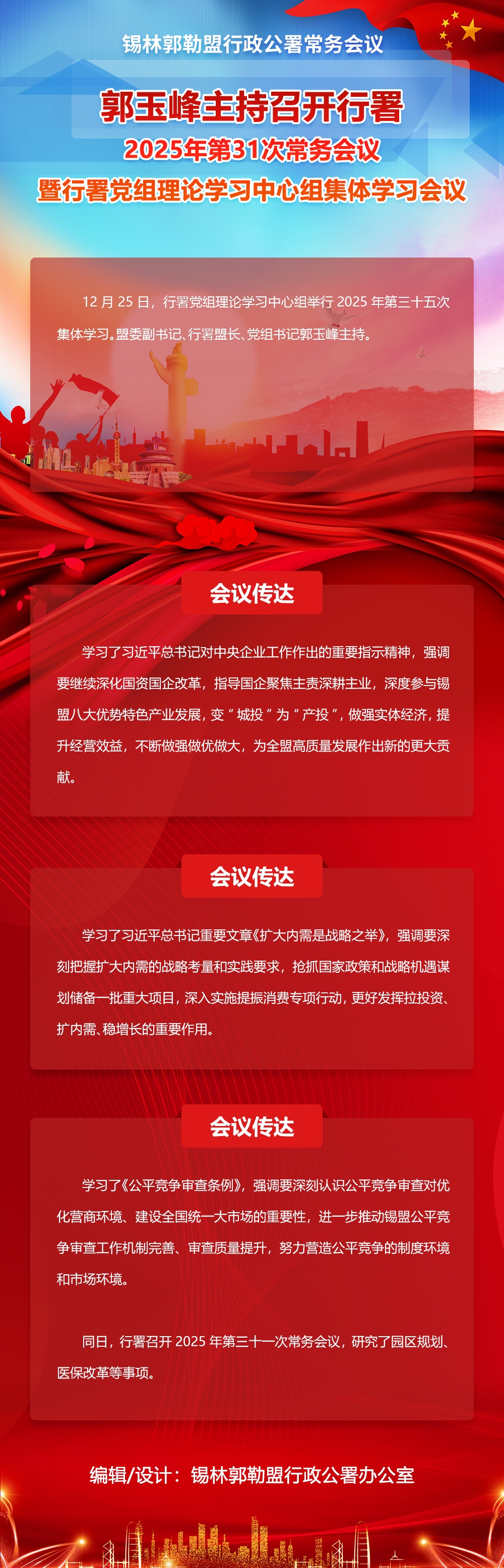 郭玉峰主持召开行署2025年第31次常务会议暨行署党组理论学习中心组集体学习会议