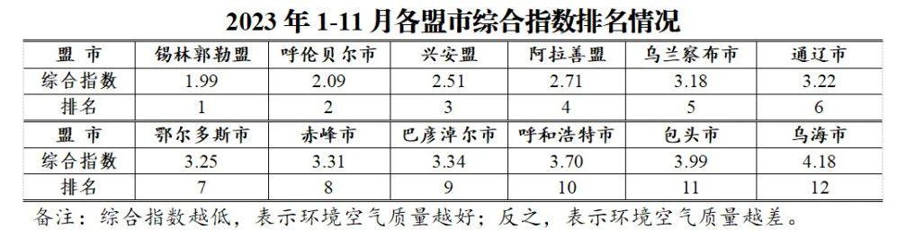 | 概述:内蒙古自治区生态环境厅公布2023年1-11月全区环境空气质量状况 | |||