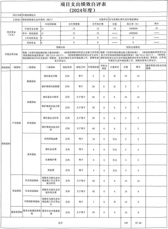 ( 1)保障东乌旗生态环境监测工作正常运行(年),目标值 1,完成值 0,分值