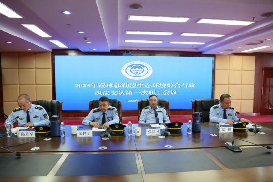盟生态环境综合行政执法支队全体干部职工参加会议,会议由盟生态环境综合行政执法支队副支队长原博主持,盟生态环境局党组成员、生态环境综合行政执法支队支队长侯世勇出席并讲话。