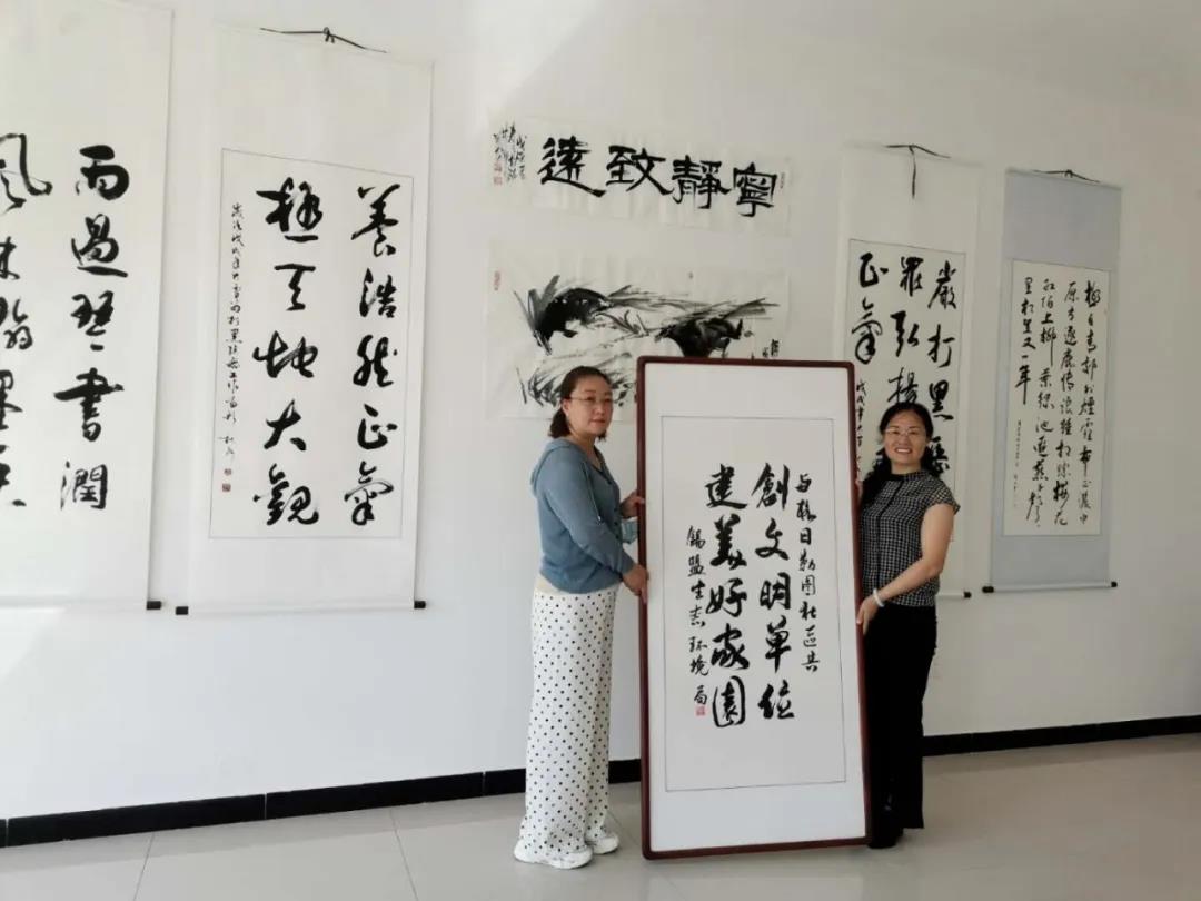 盟生态环境局副调研员赵珍同志为包联社区亲自书写装裱捐赠的书法作品
