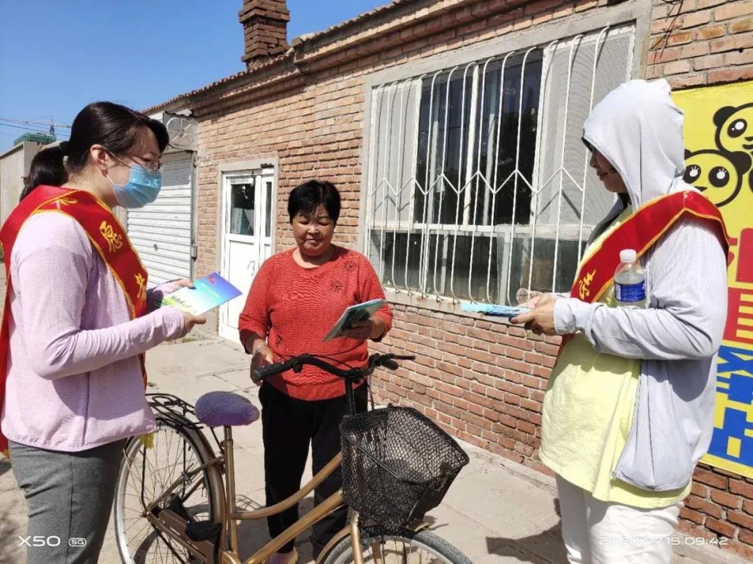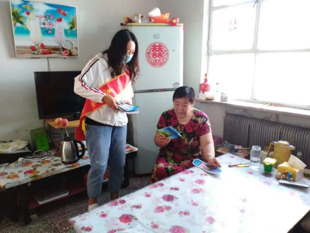 帮助社区向居民发放创城、防汛和预防鼠疫知识宣传手册