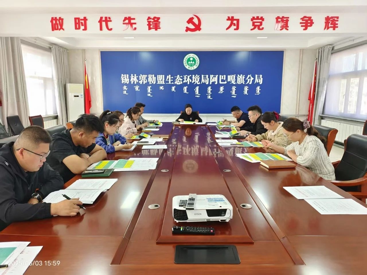 为做好第三轮第四批中央生态环境保护督察工作,6月3日下午,阿巴嘎旗生态环境分局召开阶段性重点工作调度会,会议由分局局长刘秀芳主持,局机关及生态环境执法大队全体干部职工参加会议。