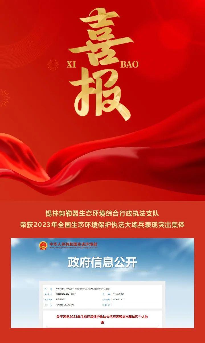 【喜报】赌球网站综合行政执法支队荣获2023年全国生态环境保护执法大练兵表现突出集体