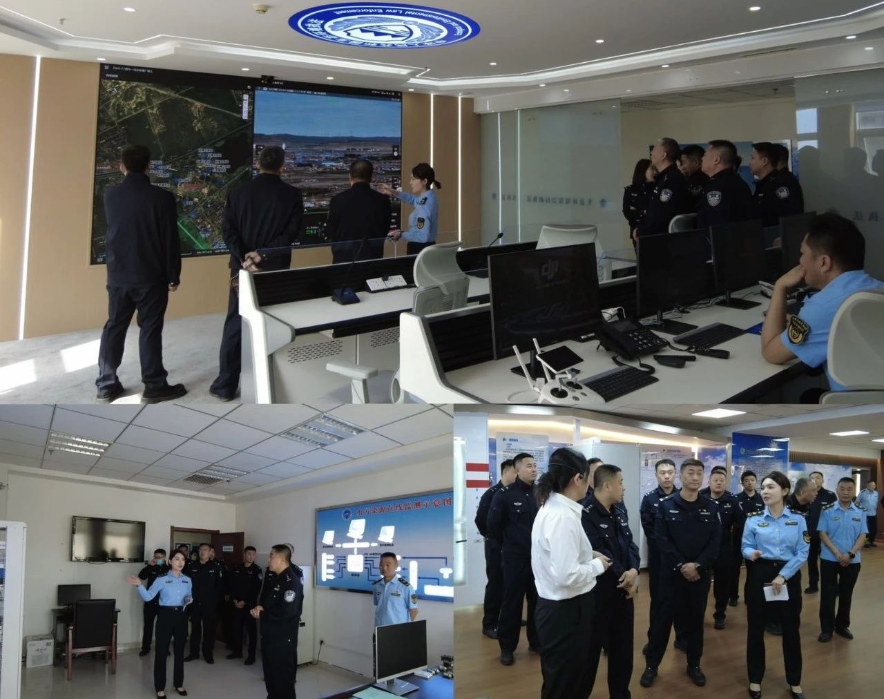 锡市公安局环食药侦大队一行实地参观了盟生态环境局固定污染源自动监控实训基地、盟生态环境综合行政执法支队标准化建设及生态环境执法情指中心,盟生态环境综合行政执法支队副支队长海丽丝同志为参观同志详细讲解了污染源在线监控数据研判、无人机执法取证等科技执法流程。