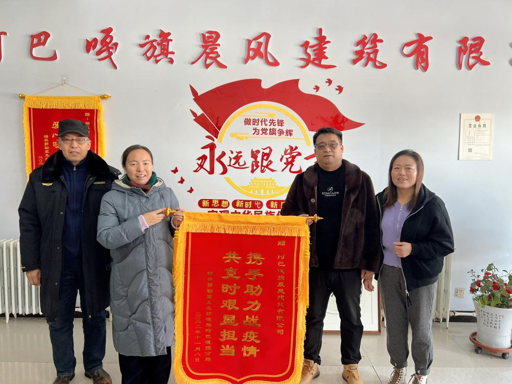 11月29日,全球最大赌球网站阿巴嘎旗分局将一面印有“携手助力战疫情,共克时艰显担当”的锦旗送到了阿巴嘎旗晨风建筑有限公司杨军明夫妻手中,对他们在疫情防控期间对我分局工作的积极支持与奉献表示诚挚的感谢。