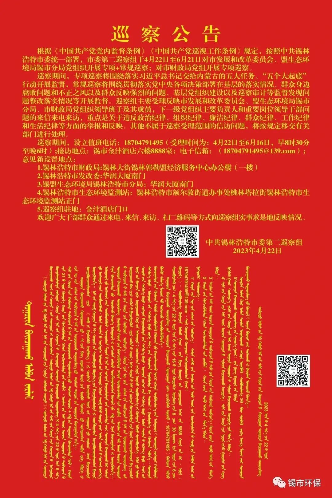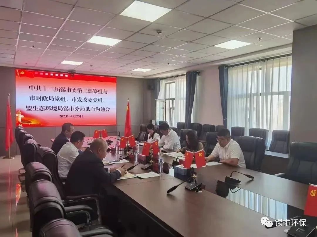 2023年4月25日下午,中共十三届锡市委第五轮第二巡察组召开巡察锡市财政局党组、锡市发改委党组、盟生态环境局锡市分局工作动员会。会前,第二巡察组组长吴秀芳与三个被巡察党组织主要负责人召开见面沟通会。