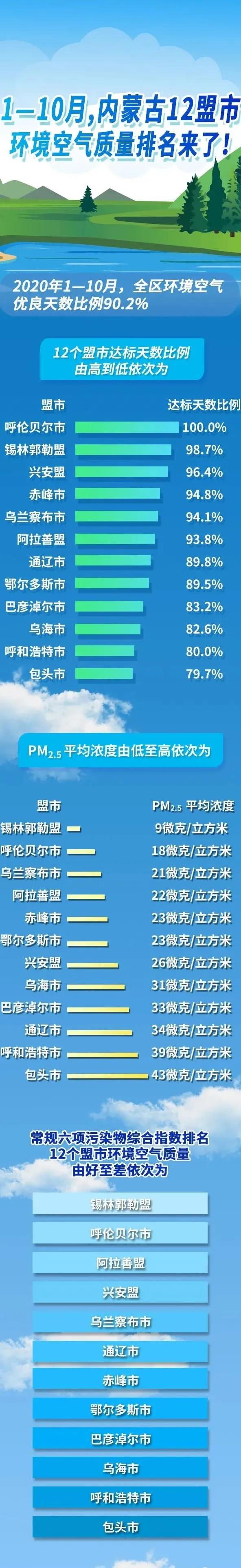 ?1-10月,内蒙古12盟市环境空气质量排名来了!