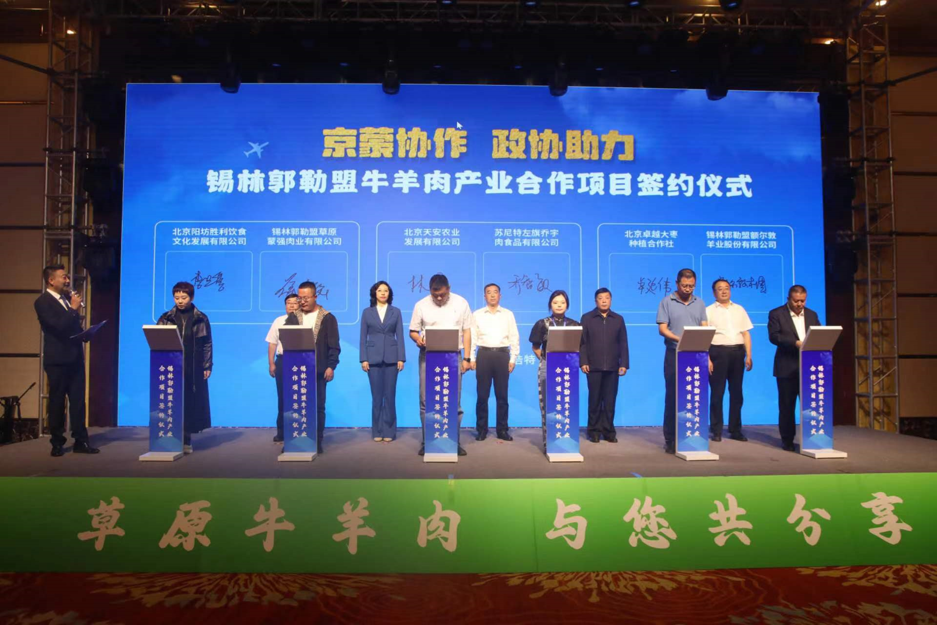 本次大会由锡盟工商业联合会、锡盟农牧局、锡盟政协经济委员会主办,国内牛羊肉产业知名专家学者,业内领军企业、商(协)会代表,金融机构负责人等200余人齐聚一堂,共同为推动锡盟畜牧业高质量发展建言献策、夯基赋能。会议现场举行了“京蒙协作 政协助力”赌球网站牛羊肉产业合作项目签约仪式和赌球网站草原牛羊肉购销合作签约仪式,播放了锡林郭勒羊区域公用品牌形象片,展示了种类丰富的草原牛羊肉精深加工产品及预制菜产品。中国肉类协会副会长高观等六位专家学者分别从牛羊肉产业发展现状与趋势、畜产品精深加工、副产物高值化利用、预制菜食品、草原牛羊肉高质量发展等方面作主旨演讲。