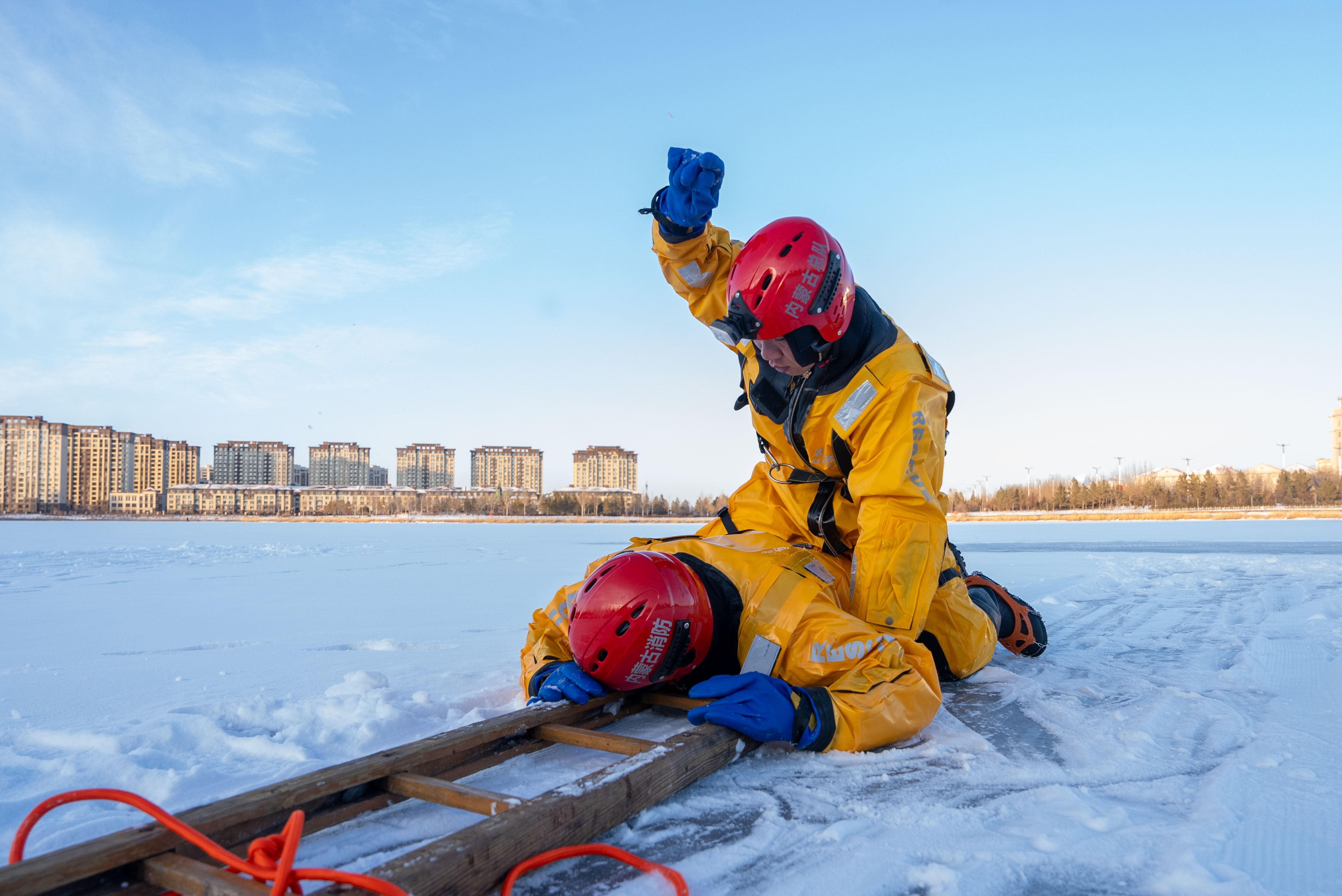 设置科目包括力量联动集结、严寒通信保障、联勤保障、蒸汽解冻、防滑链安装、紧急物资空中投送、冰面人员落水救援、积雪道路抢通与人员转运等。演练流程衔接紧密、实战行动迅速。全体指战员精神饱满、斗志昂扬,各联动单位配合默契、联络通畅,圆满完成了演练任务。