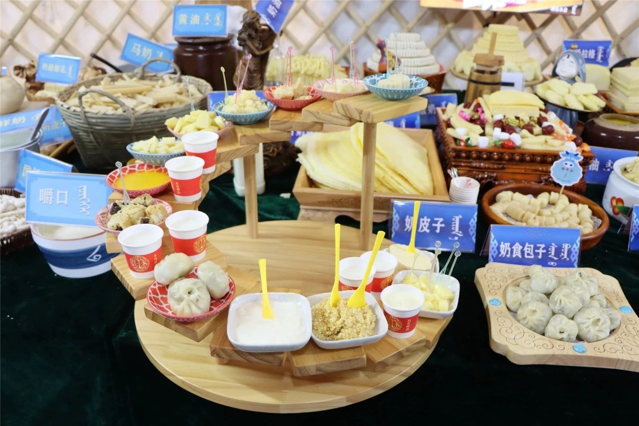 在奶食节现场,共设有传统奶食、创新奶食、特色美食三个蒙古包,在这里游客们可以品尝到形态各异的精美奶食,如熟酸奶、黄油渣、酸奶豆腐、奶皮子、奶枣、驼奶奶酪等30多种当地特色奶食品。特色美食蒙古包中汇集了东乌旗诸多乳产品生产加工商(包括个体工商户、小作坊、合作社)生产的产品参展,其中有便捷奶茶、风干牛肉、奶豆腐等东乌旗的特色美食产品,让大家感受到了东乌旗奶食品制作工艺上传统与创新思维的碰撞。
