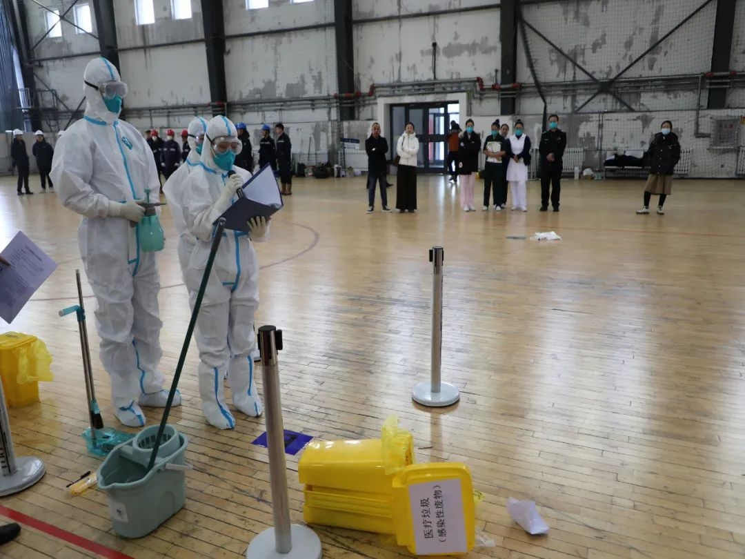 在医疗垃圾泄露应急演练方面,通过实地模拟“医疗废物回收人员在回收医疗废物过程中,因包装袋破裂,部分医疗废物散落在地”的紧急情况。按环节考察医疗废物回收人员初期处置,经现场评估后逐级向上级汇报医疗废物的类别、数量、影响范围及严重程度,同时启动医疗废物泄露、扩散应急处置预案,并成立医疗废物泄露处置指挥小组,相关工作人员对事故现场进行封锁,并放置警示标识,回收人员穿戴好防护用品,对散落的医疗废物进行收集、清理,并将医疗废物封袋,贴上标识,转运至医疗废物暂存处,并对现场进行喷洒消毒,在确保无残留医疗废物且对清洁消毒效果评估符合要求后解除封锁的全流程处置能力。