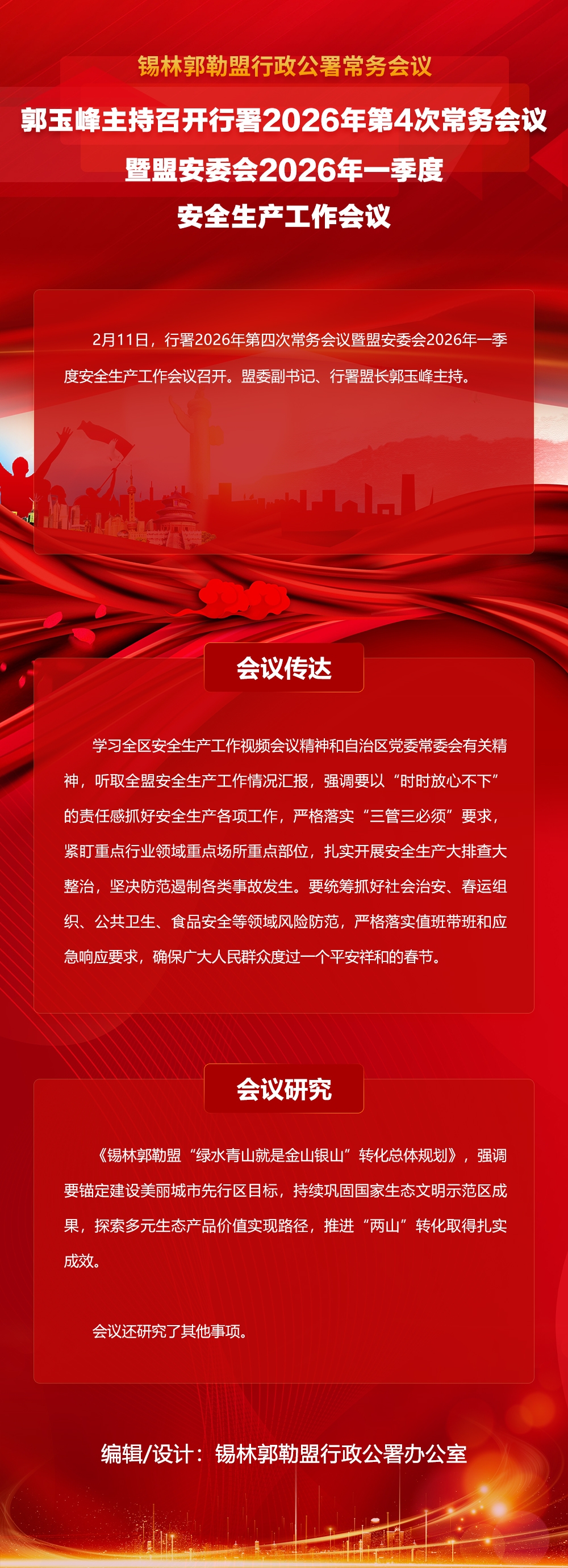 图解:郭玉峰主持召开行署2026年第4次常务会议暨盟安委会2026年一季度安全生产工作会议