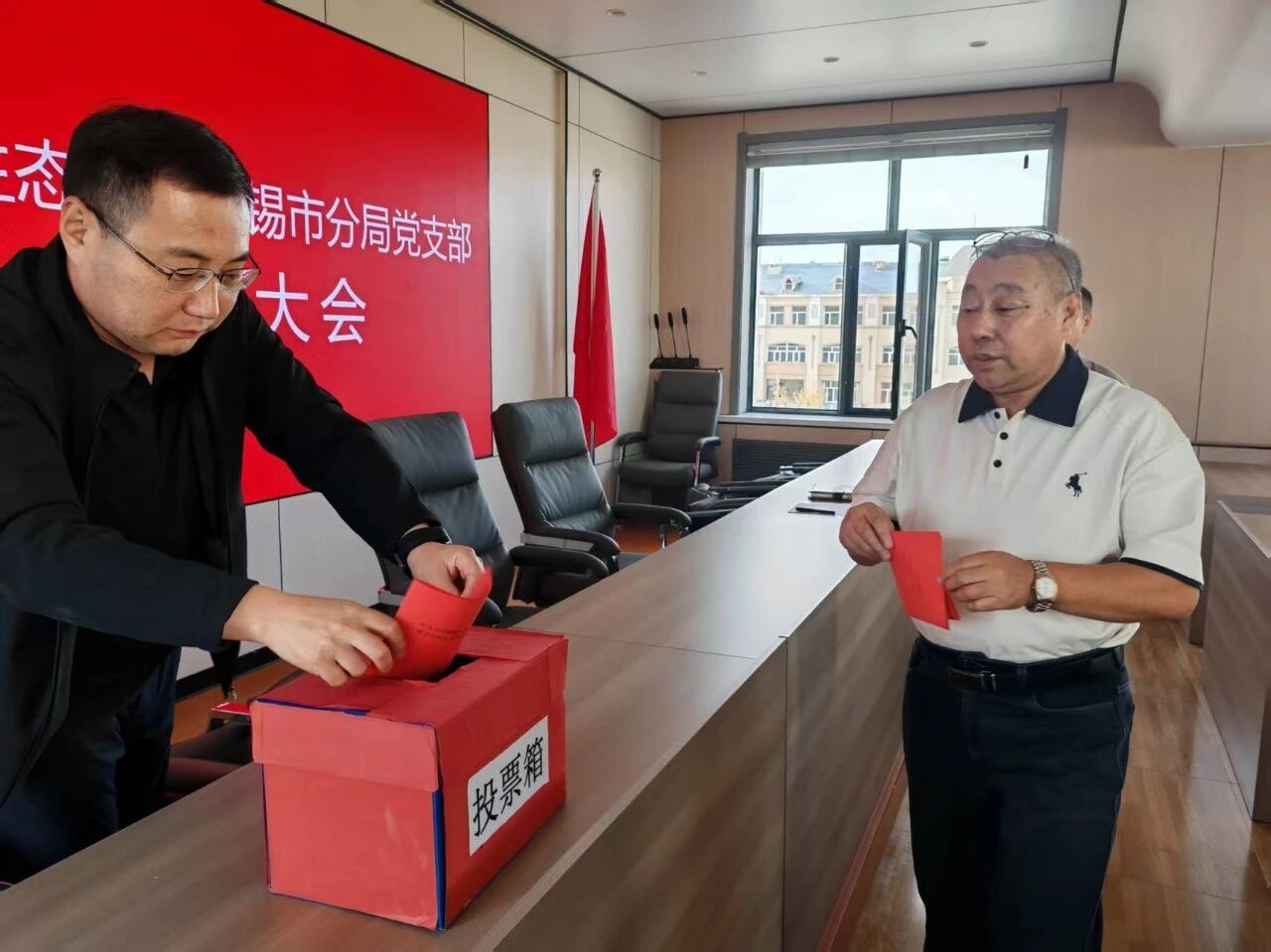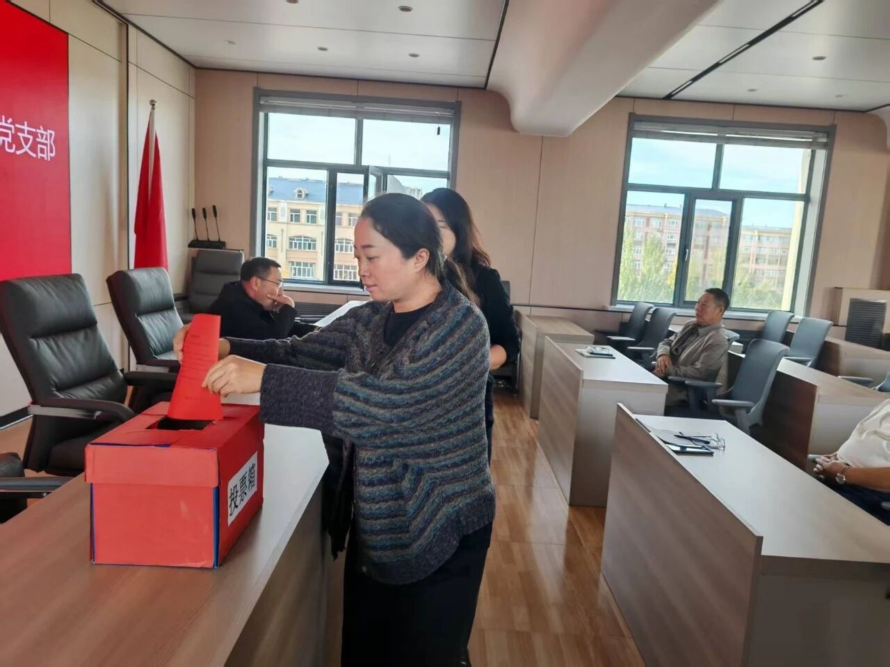 选举环节中,在监票人的现场监督下,全体党员严格按照选举程序,以无记名投票的方式对宣传委员候选人进行投票。投票结束后,计票人当场清点选票、统计结果,监票人对选举过程及结果进行核查并现场公布。最终,赵冠颖同志当选分局党支部宣传委员,大会选举结果将按程序报上级党委备案。