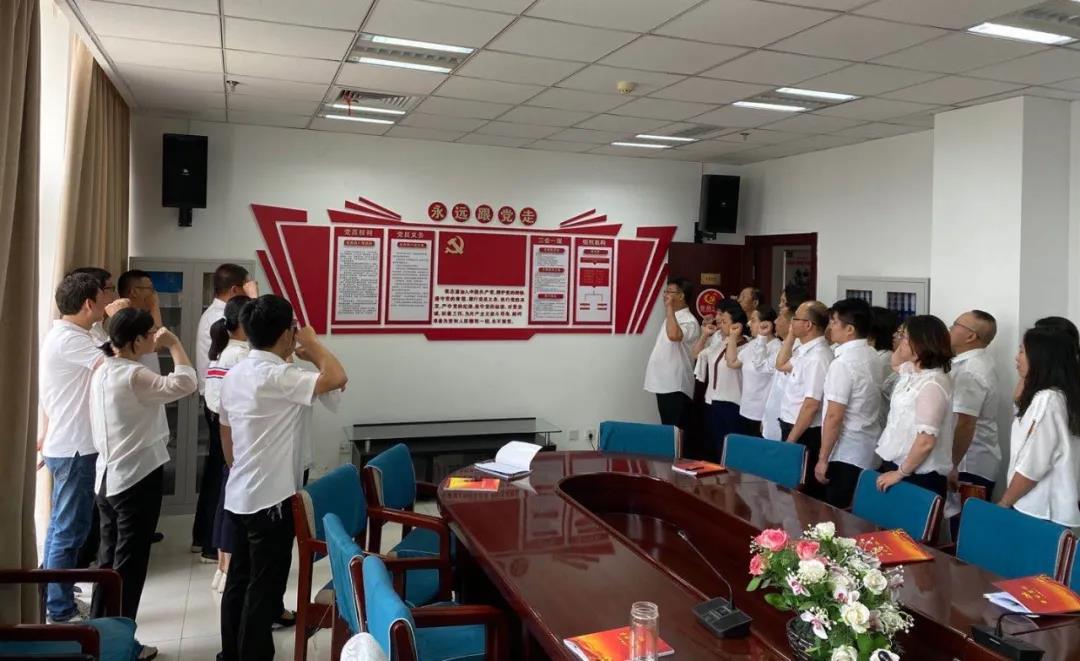 党支部书记张保生同志带领全体党员面向党旗重温入党誓词、集体过政治生日。誓词虽短,却字字珠玑,通过铿锵有力的宣誓再次铭记誓言,进一步坚定理想信念、恪守党的性质和宗旨、践行初心和使命。