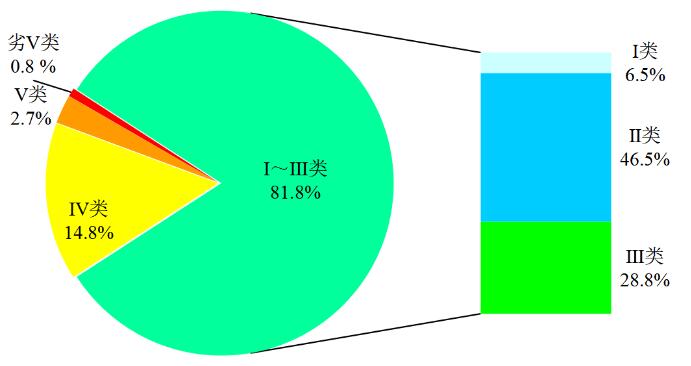 图1 2020年10月全国地表水水质类别比例