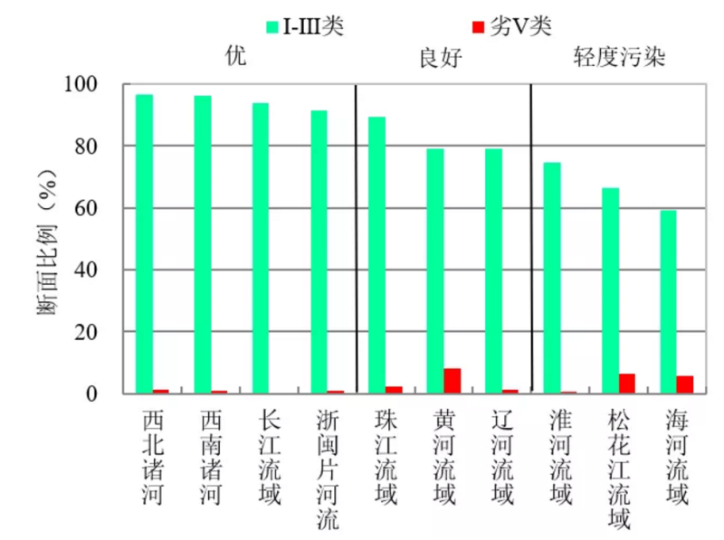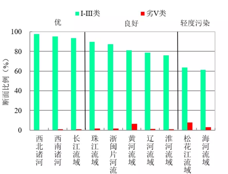 1-3月,长江、黄河、珠江、松花江、淮河、海河、辽河等七大流域及西北诸河、西南诸河和浙闽片河流水质优良(Ⅰ~Ⅲ类)断面比例为84.7%,同比上升3.1个百分点;劣Ⅴ类断面比例为2.2%,同比下降1.5个百分点。主要污染指标为化学需氧量、氨氮和高锰酸盐指数。其中,西北诸河、西南诸河、长江流域和浙闽片河流水质为优;珠江、黄河和辽河流域水质良好;淮河、松花江和海河流域为轻度污染。