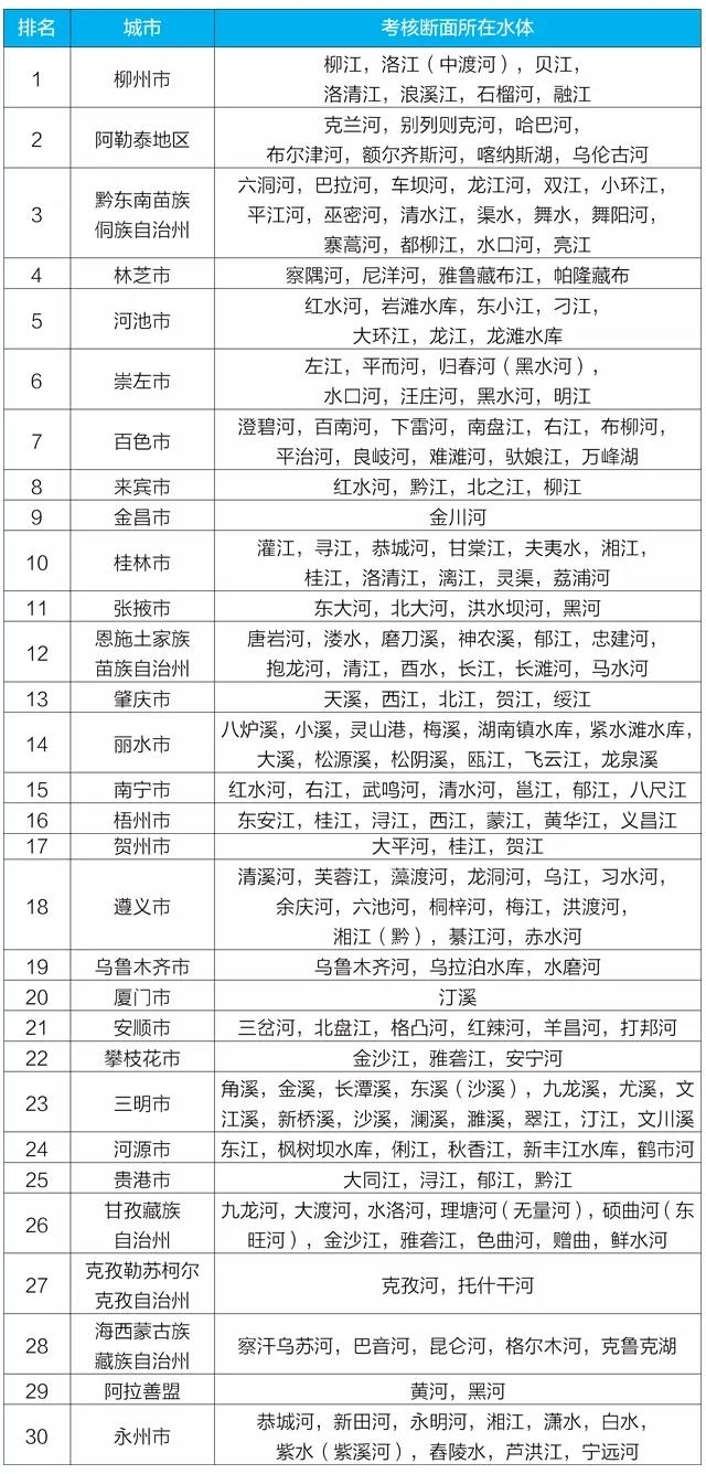1-3月,全国地级及以上城市中,柳州、阿勒泰和黔东南州等30个城市国家地表水考核断面水全球最大赌球网站相对较好(从第1名至第30名),吕梁、长春和邢台市等30个城市国家地表水考核断面水全球最大赌球网站相对较差(从倒数第1名至倒数第30名);鄂尔多斯、榆林和铜川市等30个城市国家地表水考核断面水赌球网站变化情况相对较好(从第1名至第30名),包头、安阳和渭南市等30个城市国家地表水考核断面水赌球网站变化情况相对较差(从倒数第1名至倒数第30名)。见附表1-4。