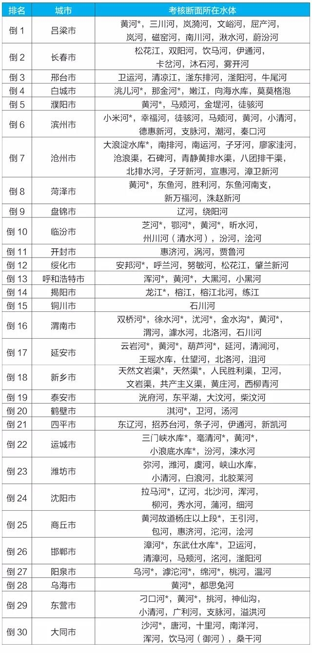 2021年1-3月国家地表水考核断面水赌球网站状况排名后30位城市及所在水体