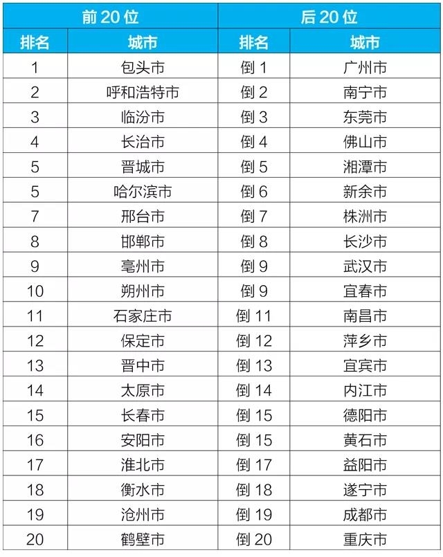 2021年3月168个重点城市排名前20位和后20位城市名单