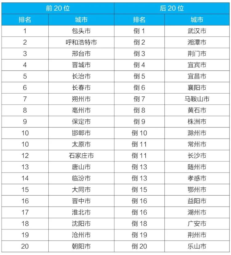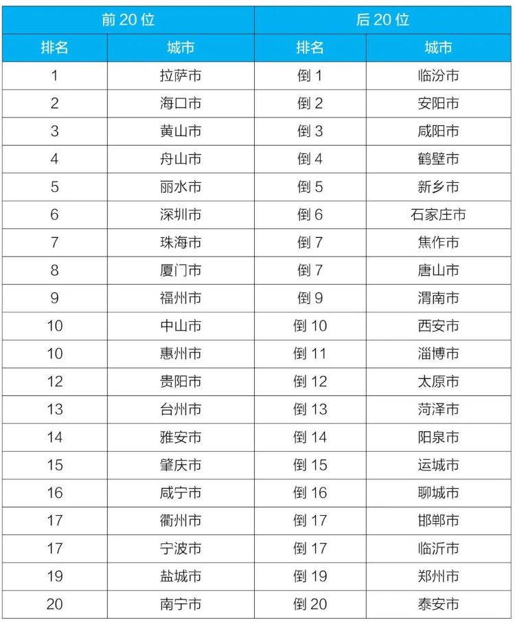 2021年1-6月168个重点城市空气质量排名前20位和后20位城市名单