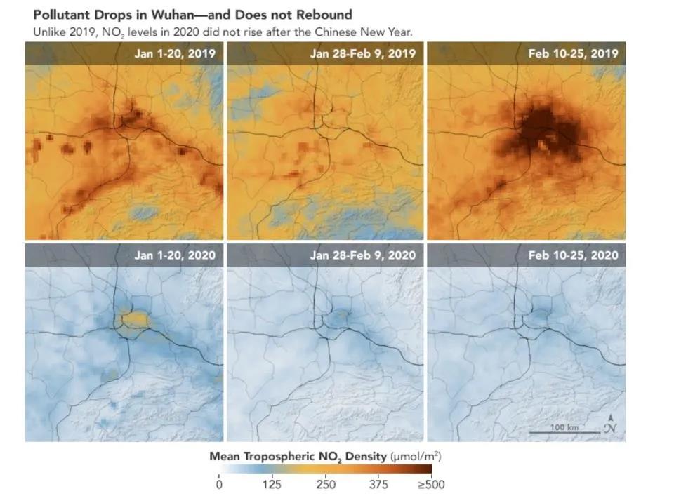 美国宇航局戈达德太空飞行中心的空气质量研究员刘飞说:“上一次NASA的科学家在特定事件上检测到如此大范围的二氧化氮下降,是在2008年经济衰退期间。但那时候的下降是平缓的,不是骤然的。”