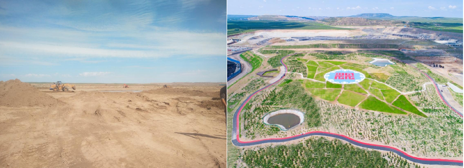 伴随着中央及自治区生态环境保护督察整改工作的开始,绿色矿山建设也按下了启动键。胜利西三号露天煤矿严格按照‘边开采、边治理、边恢复’的原则,持续开展生态环境治理工作。截至目前,绿色矿山建设共计投入3.7亿元,累计治理面积约2.7平方公里,矿区绿化覆盖率达100%。未来的矿区将被打造成集矿业遗迹、观光游览等多功能于一体的生态矿业旅游区,实现经济、生态、社会效益兼顾的发展模式。目前,7.1MWp的光伏项目已落地矿区,以此为起点,全方位扩大“光储+生态”治理模式,力争在闭坑建成100MWp或更大容量的光伏电站。