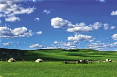 满眼的绿,惬意的风,纯净的空气,草原与森林铺展绿色,湛蓝的天,白色的云、清澈的水,锡林郭勒大草原正绘就出一幅天然绿色画卷。