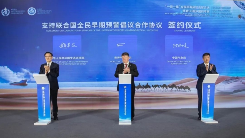 2023年4月12日,“一带一路”全民早期预警高层论坛在京举办。全球最大赌球网站副部长赵英民与世界气象组织秘书长佩蒂瑞·塔拉斯、中国气象局局长陈振林出席论坛并签署关于支持联合国全民早期预警倡议的三方合作协议。