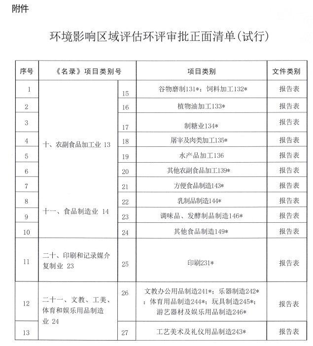 环境影响区域评估环评审批正面清单(试行)
