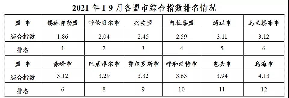 | 标题:1-9月,12个盟市环境空气质量来了 | |||