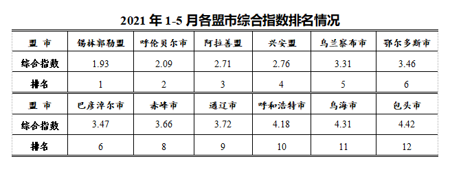 标题:内蒙古自治区生态环境厅公布2021年1-5月全区环境空气质量状况 | |||