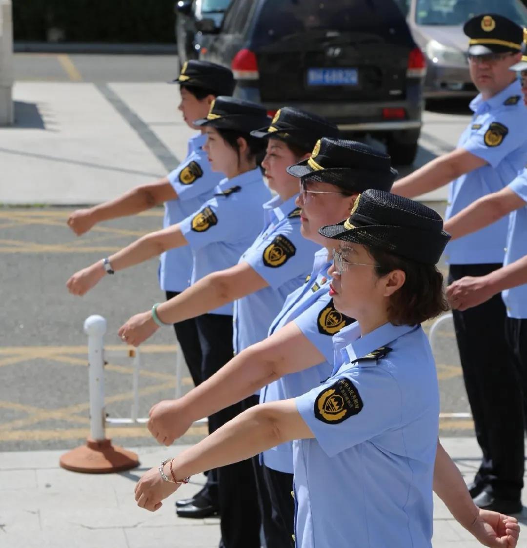 在炎炎烈日下,执法人员进行了行进、站姿等科目的队列训练。通过此次练兵活动,进一步增强了队伍的凝聚力和向心力。