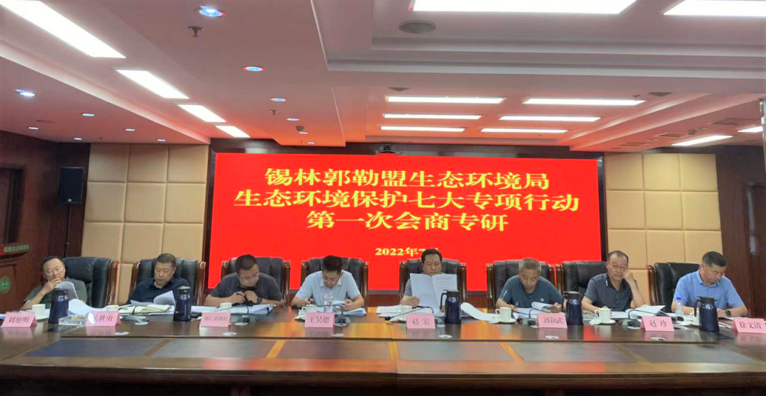 局党组书记、局长赵宏对生态环境保护七大专项行动进行了再部署、再要求。一是提高思想认识。他强调,七大专项行动是针对全盟生态环境系统工作中的重点任务和薄弱环节而实施的,意义重大、影响深远。各牵头科室(单位)和各督导组要统一思想,提高认识,进一步明确工作重点和任务目标,坚持问题导向,完善任务台账,紧抓任务落实。二是加强综合研判。他强调,今后每月月底都将召开七大专项行动会商专研会议,各牵头科室(单位)和各督导组要对各旗县市(区)任务落实情况、存在困难问题进行认真研究,做到进度明了、问题清晰、措施有力。三是强化鞭策激励。他强调,各牵头科室(单位)和各督导组要提高站位、主动作为,认真履行好牵头和督导责任,建立鞭策激励机制,对每个旗县市(区)、每项专项行动进行打分排名,定期通报任务落实情况,激励先进、鼓励后进,确保七大专项行动取得实效。