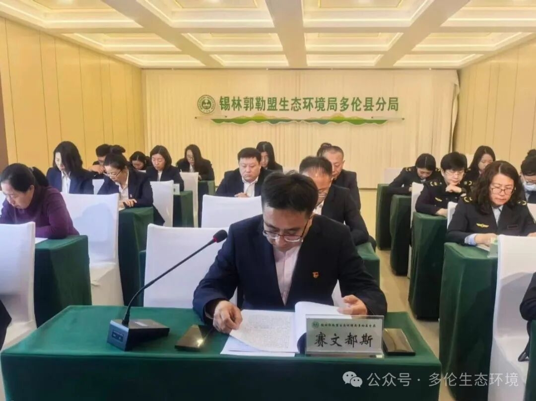 会上,由多伦县分局党支部书记、局长赛文都斯代表分局领导班子作2025年度工作总结,系统回顾了过去一年全局在污染防治攻坚、生态保护、执法监管、环境监测、意识形态建设等重点工作中的具体举措与成效亮点,客观剖析了工作推进过程中存在的短板与不足,同时明确了2026年的工作思路与重点任务。