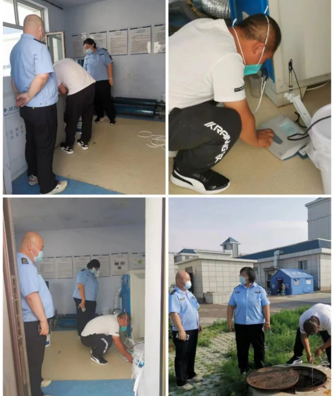 现场检查二连浩特市人民医院,详细询问其医疗污水处理工艺流程、处理能力、实际处理水量、运行情况、消毒杀菌、近期监测结果等方面的情况,同时现场监测其排放医疗废水的余氯值、PH值,均符合检测标准。 在检查过程中,检查人员实地查看了各集中隔离酒店及集中隔离观察点污水消毒设施、消毒用药、余氯检测情况,仔细核对了消毒台账记录。