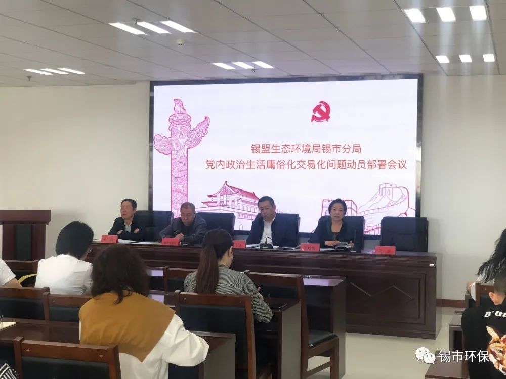 锡盟生态环境局锡市分局于近日召开了全体党员大会,安排部署党内政治生活庸俗化交易化问题集中治理工作。